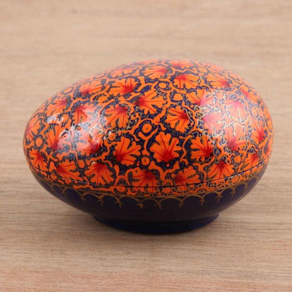 India Handmade Orange Leaf Papier Mache Box 5 inch 'Orange Chinar Foliage' Item ID: 2671789047