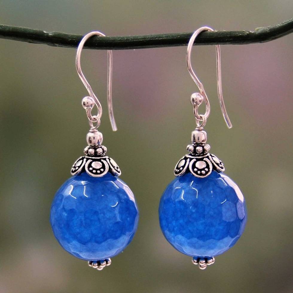 India Handmade Sterling Silver Dark Blue Chalcedony Earrings 'Ocean Magic' Item ID: 2669943001