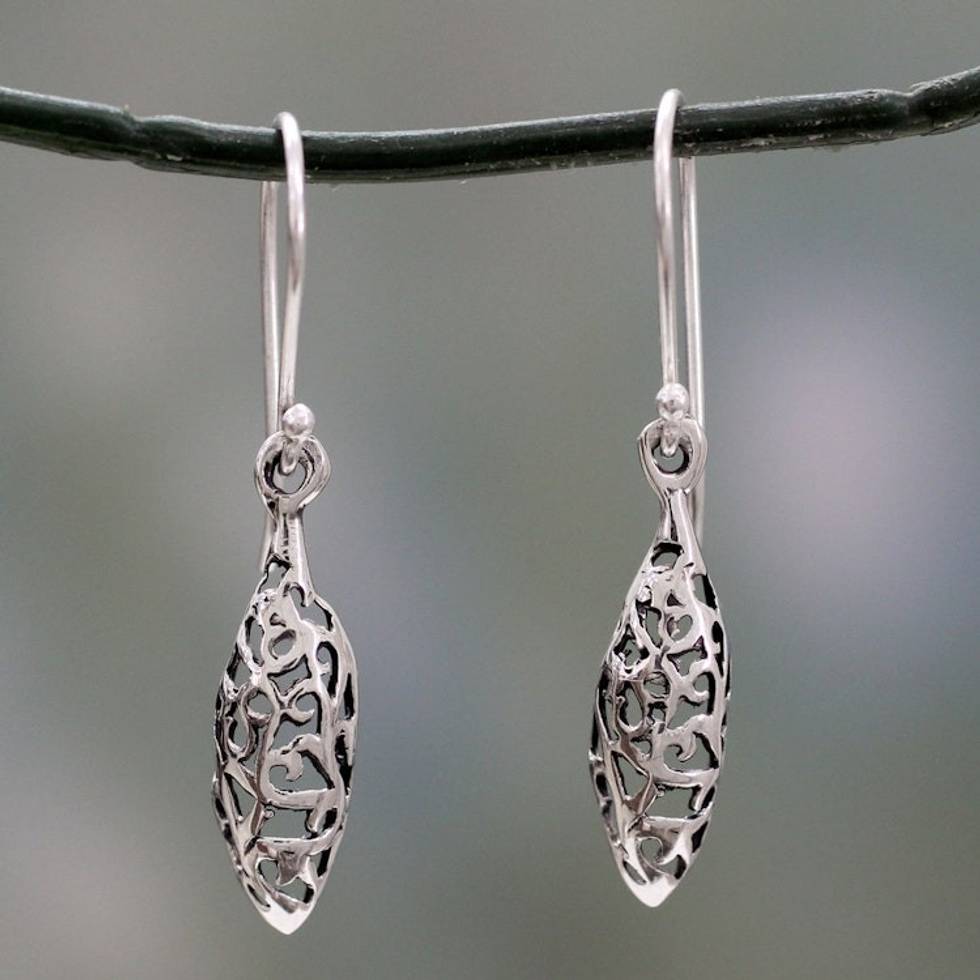 India Jali Handcrafted Sterling Silver Dangle Earrings 'Jali Dewdrop' Item ID: 2671793265