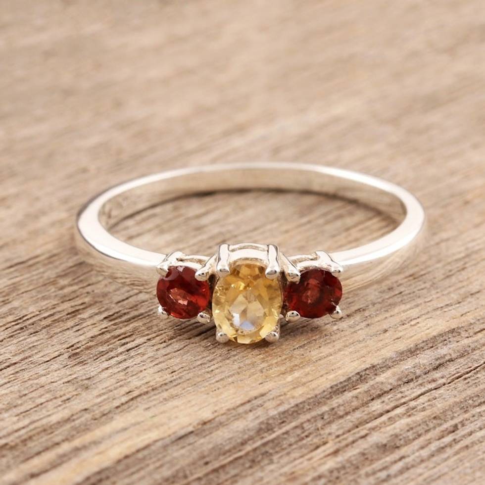India Jewelry Citrine and Garnet Sterling Silver Ring 'Passionate Embrace' Item ID: 2669956107