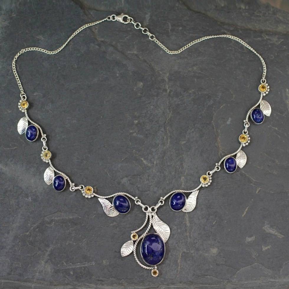 India Jewelry Lapis Lazuli and Citrine Y Necklace 'Dew Blossom' Item ID: 2669923894
