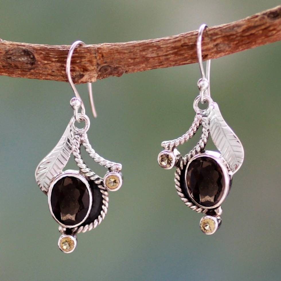 India Jewelry Smoky Quartz and Citrine Earrings 'Dew Blossom' Item ID: 2671793791