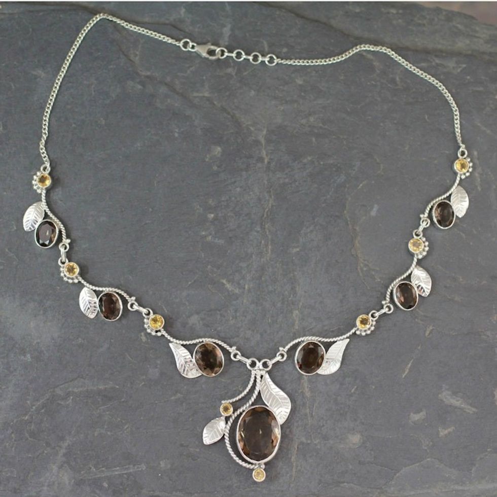 India Jewelry Smoky Quartz and Citrine Y-necklace 'Dew Blossom' Item ID: 2671793554
