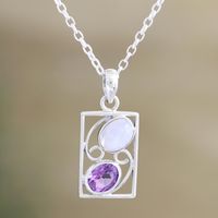 Indian Amethyst and Rainbow Moonstone Pendant Necklace 'Sweet Companions' Item ID: 2671622772