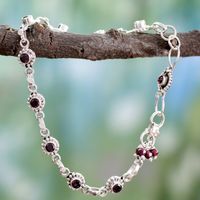 Indian Ankle Jewelry with Garnet and Sterling Silver 'Scarlet Sun Blossoms' Item ID: 2669923769
