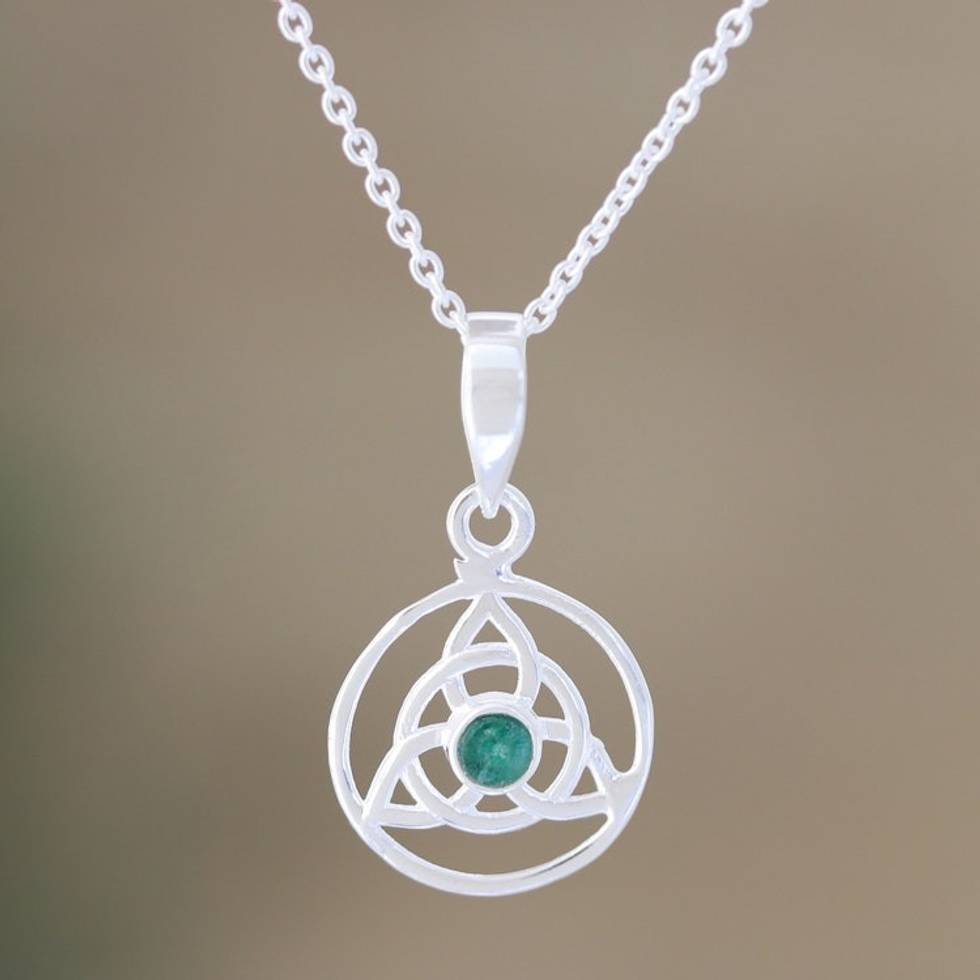 Indian Aventurine and Sterling Silver Pendant Necklace 'Celtic Green' Item ID: 2671622387