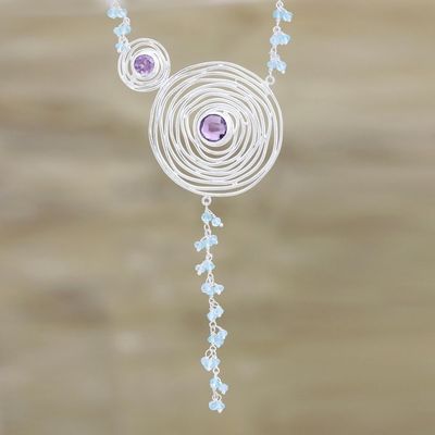 'Glittering Gemstones,' multi-gemstone pendant necklace is as pictured, delicate, feminine, beautiful, artistic design. Wear with Neetu Barathi's earrngs, 'Passionate Muse'to make a set that enhances the appearance of the wearer and outfit. Settings are simple, do not overpower gemstones. Happy with purchase.