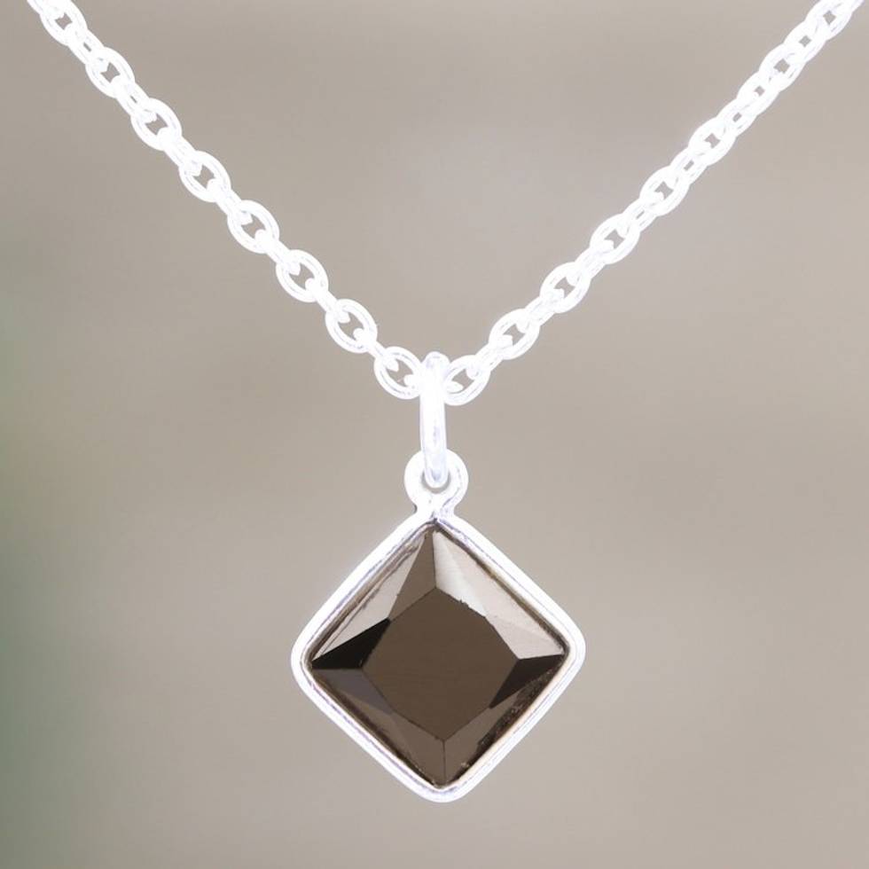Indian Black Onyx and Sterling Silver Pendant Necklace 'Liquid Smoke' Item ID: 2671789175