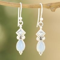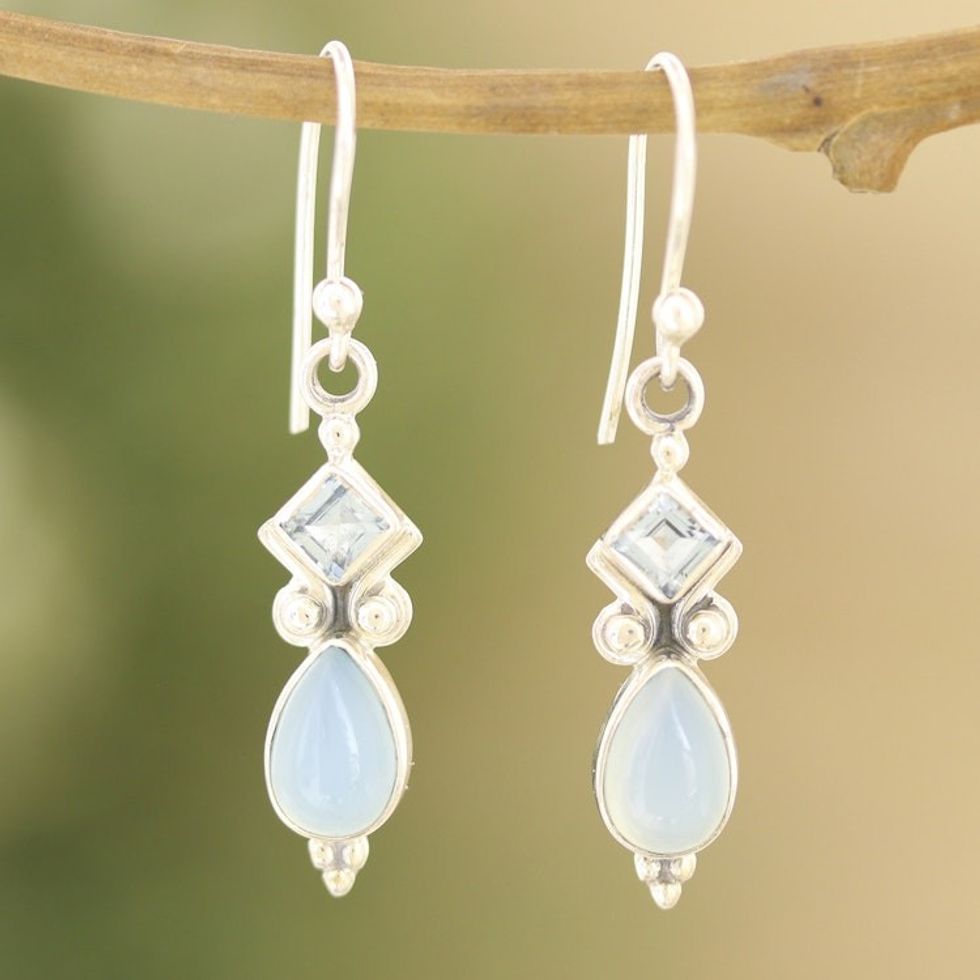 Indian Blue Topaz and Chalcedony Dangle Earrings 'Dancing Blue Gems' Item ID: 2671789119