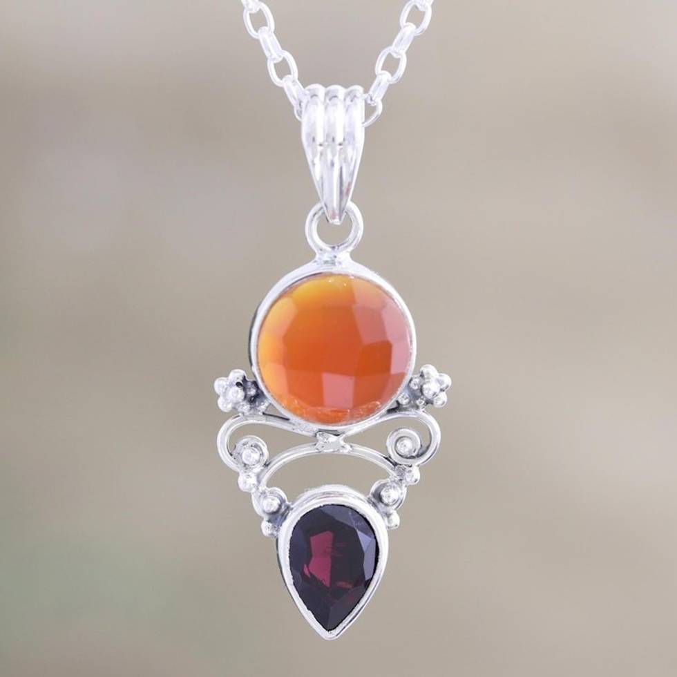 Indian Carnelian and Garnet Pendant Necklace 'Eternal Sun' Item ID: 2671788256