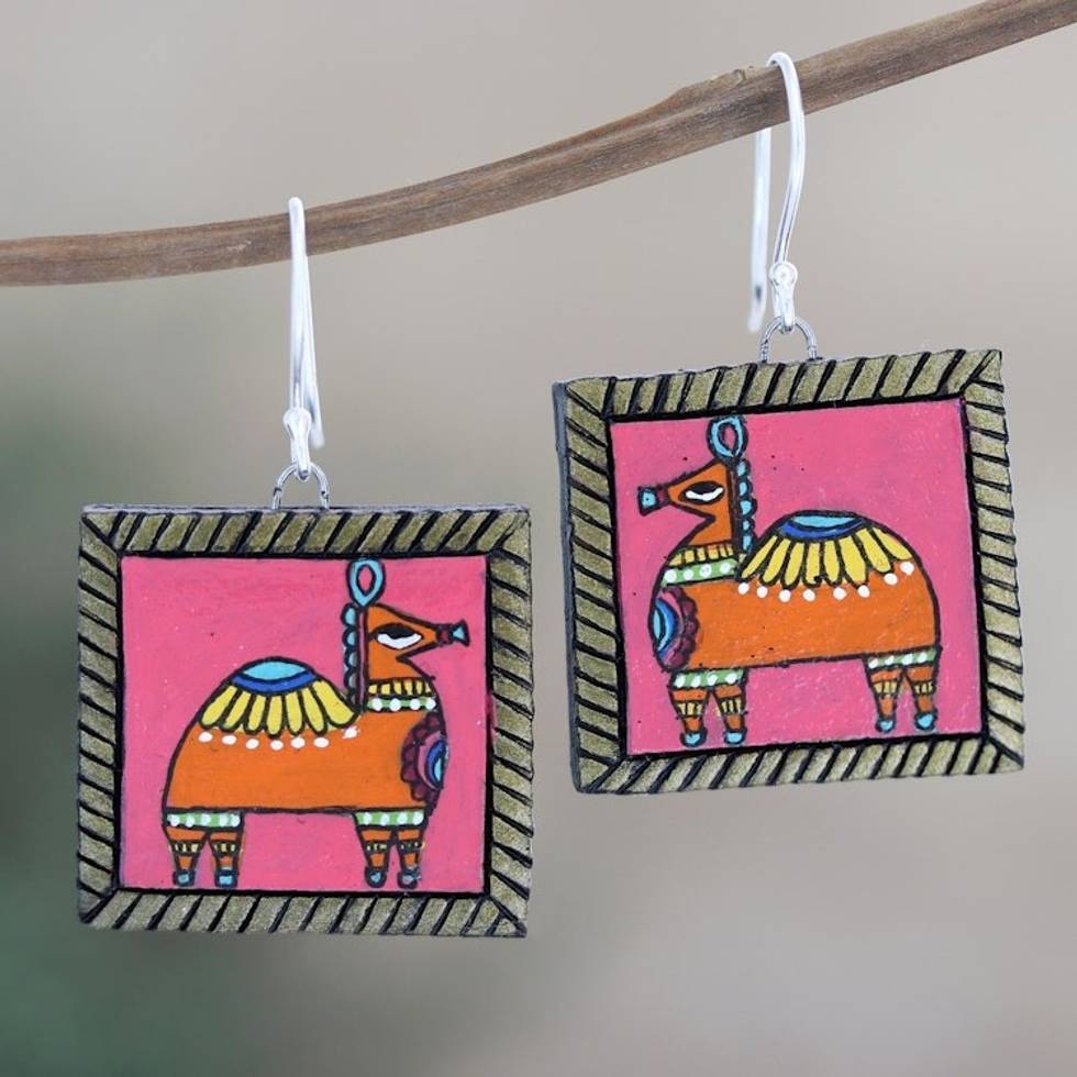 Indian Ceramic Dangle Earrings with Camel Motif 'Rajasthani Camel' Item ID: 2671621965