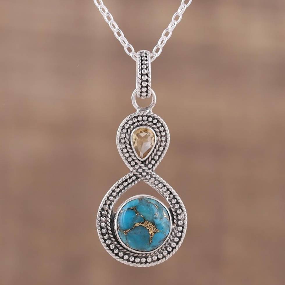 Indian Citrine and Composite Turquoise Pendant Necklace 'Dazzling Infinity' Item ID: 2671790970