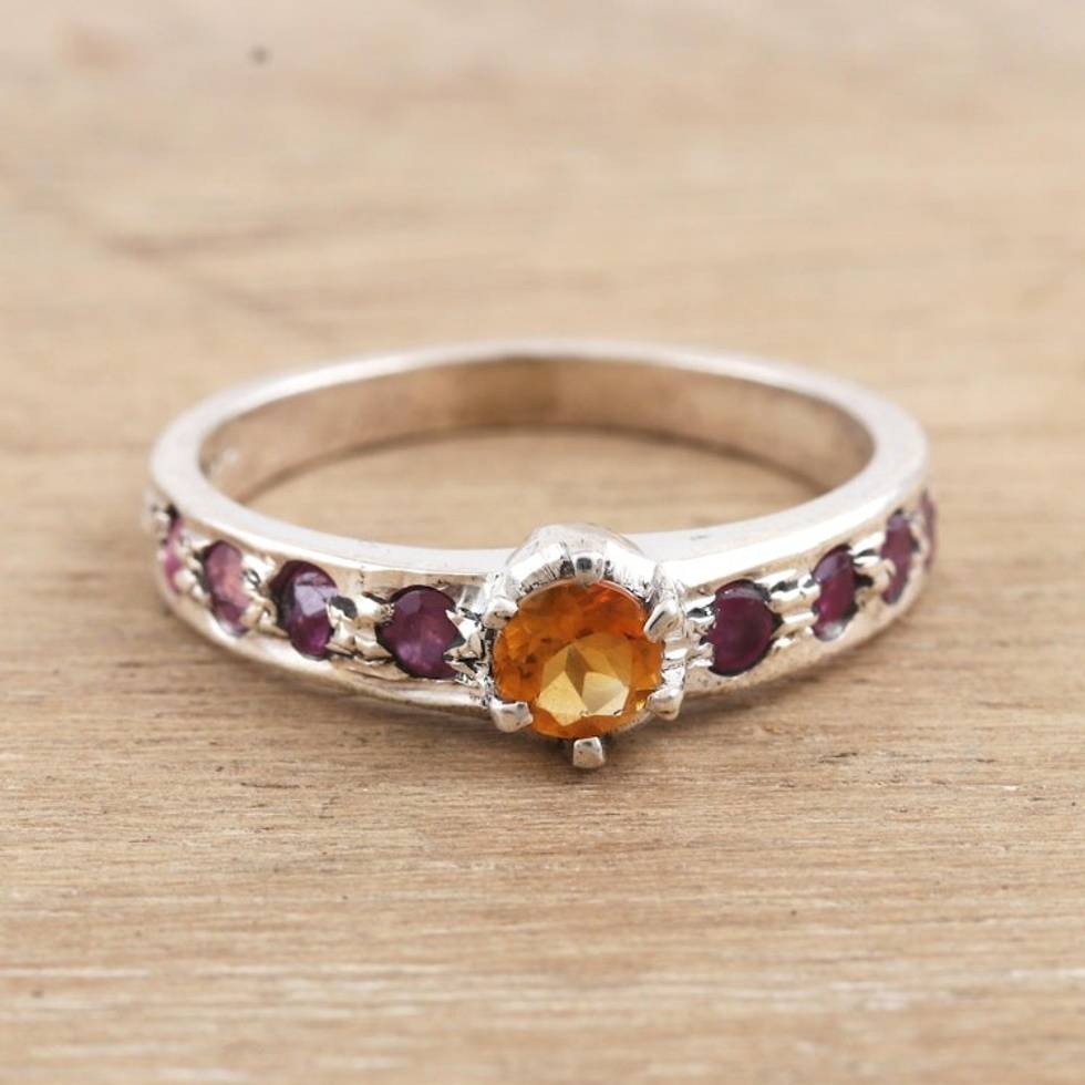 Indian Citrine and Ruby Solitaire Ring 'Shimmering Union in Yellow' Item ID: 2669924784