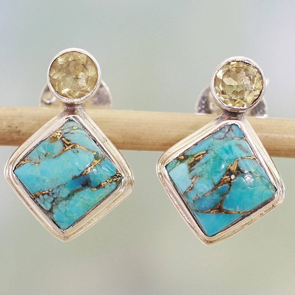 Indian Citrine Earrings with Composite Blue Turquoise 'Turquoise Sparkle' Item ID: 2669943618
