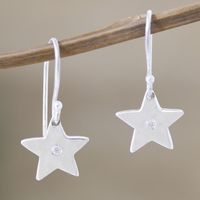 Indian Cubic Zirconia Dangle Earrings with Star Motif 'Winter Star' Item ID: 2671787398