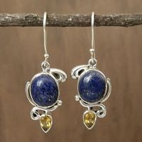 Indian Earrings with Lapis Citrine and Sterling Silver 'Royal Charm' Item ID: 2671618961