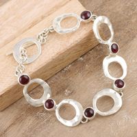 Indian Garnet and Sterling Silver Link Bracelet 'Every Other Heartbeat' Item ID: 2669925319