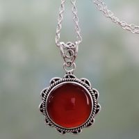 Indian Handcrafted Sterling Silver and Carnelian Necklace 'Burst of Passion' Item ID: 2669944153