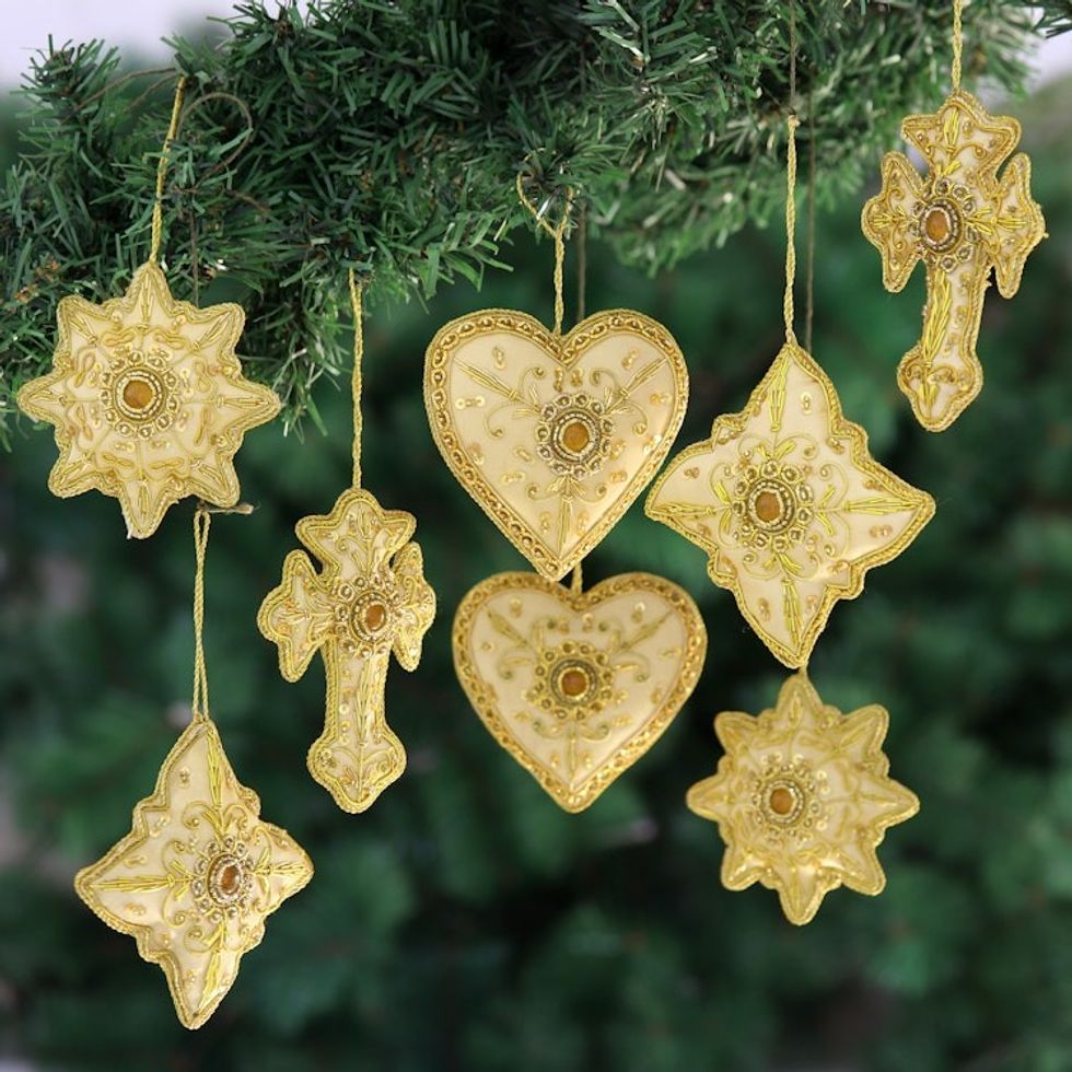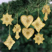 Indian Handmade Heart Shaped Ornaments Set of 8 'Golden Glory' Item ID: 2669943896