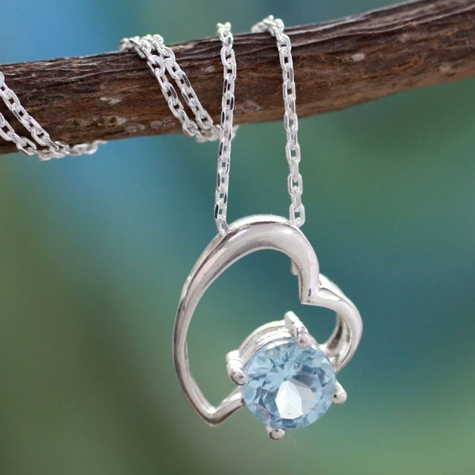 Indian Heart Jewelry Sterling Silver and Blue Topaz Necklace 'Promise of Love' Item ID: 2671794274