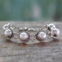 Indian Jewelry Bracelet in Sterling Silver and Pearls 'Prosperity' Item ID: 2671794783