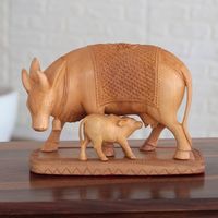 Indian Kadam Wood Sculpture with Cow Motif 'Ties That Bind' Item ID: 2669889370
