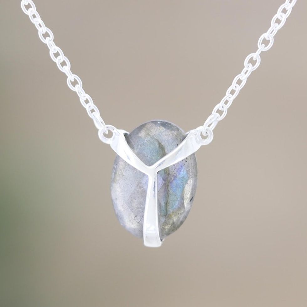 Indian Labradorite and Sterling Silver Pendant Necklace 'Air Kiss in Iridescent' Item ID: 2671625292