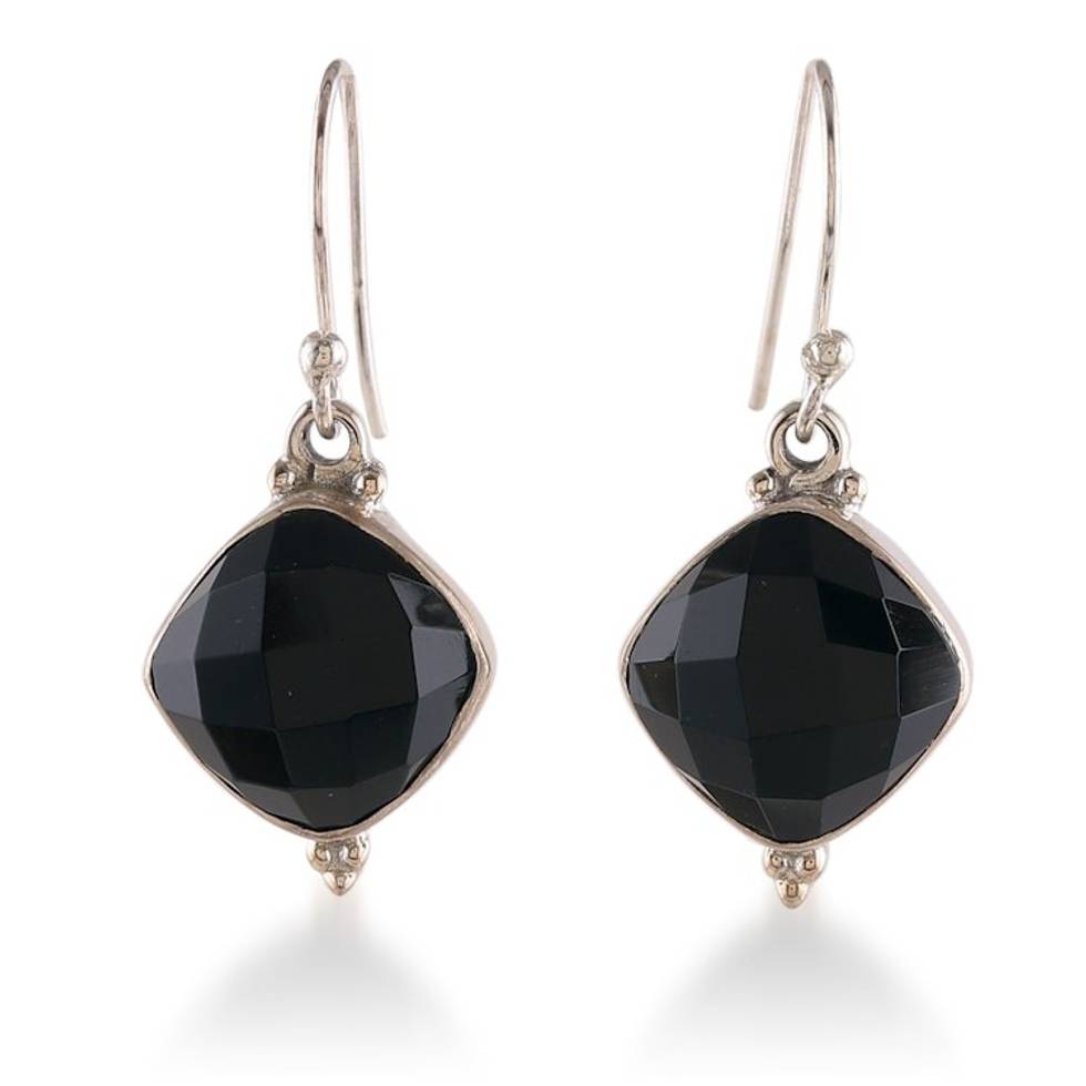 Indian-Made Dangle Earrings with 33-Carat Faceted Onyx Gems 'Mysterious Kiss' Item ID: 2671622682
