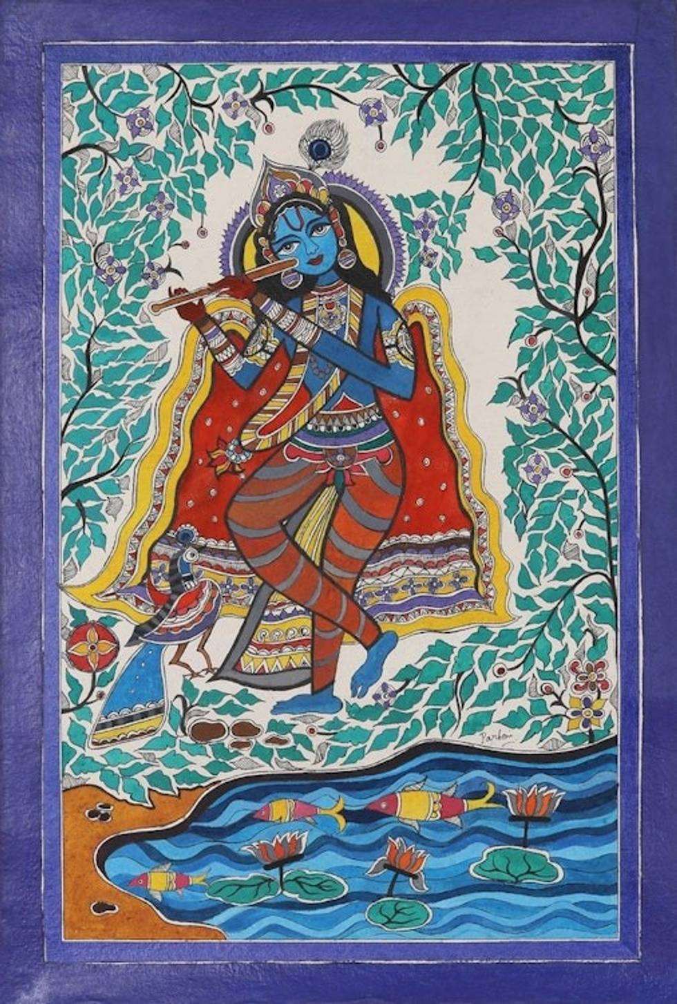 Indian Madhubani Painting on Handmade Paper 'Murlimanohar' Item ID: 2671789179
