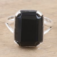 Indian Onyx and Sterling Silver Cocktail Ring 'Mirrored Moon' Item ID: 2669923815