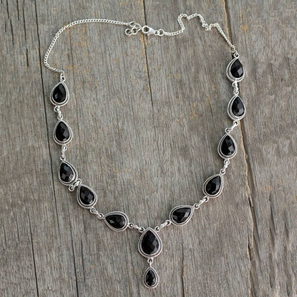 Indian Onyx and Sterling Silver Y Necklace 'Midnight Teardrop' Item ID: 2671619680