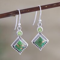 Indian Peridot and Sterling Silver Dangle Earrings 'Green Revolution' Item ID: 2671788239