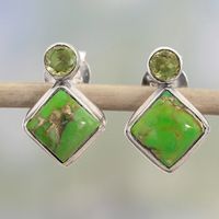 Indian Peridot Earrings with Composite Green Turquoise 'Green Sparkle' Item ID: 2671618743