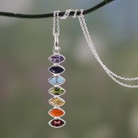 Indian Seven-Gemstone Chakra Necklace in 925 Sterling Silver 'Chakra Balance' Item ID: 2669924072