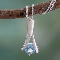 Indian Sterling Silver and Blue Topaz Necklace 'Silver Flare' Item ID: 2671620979