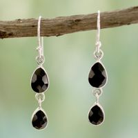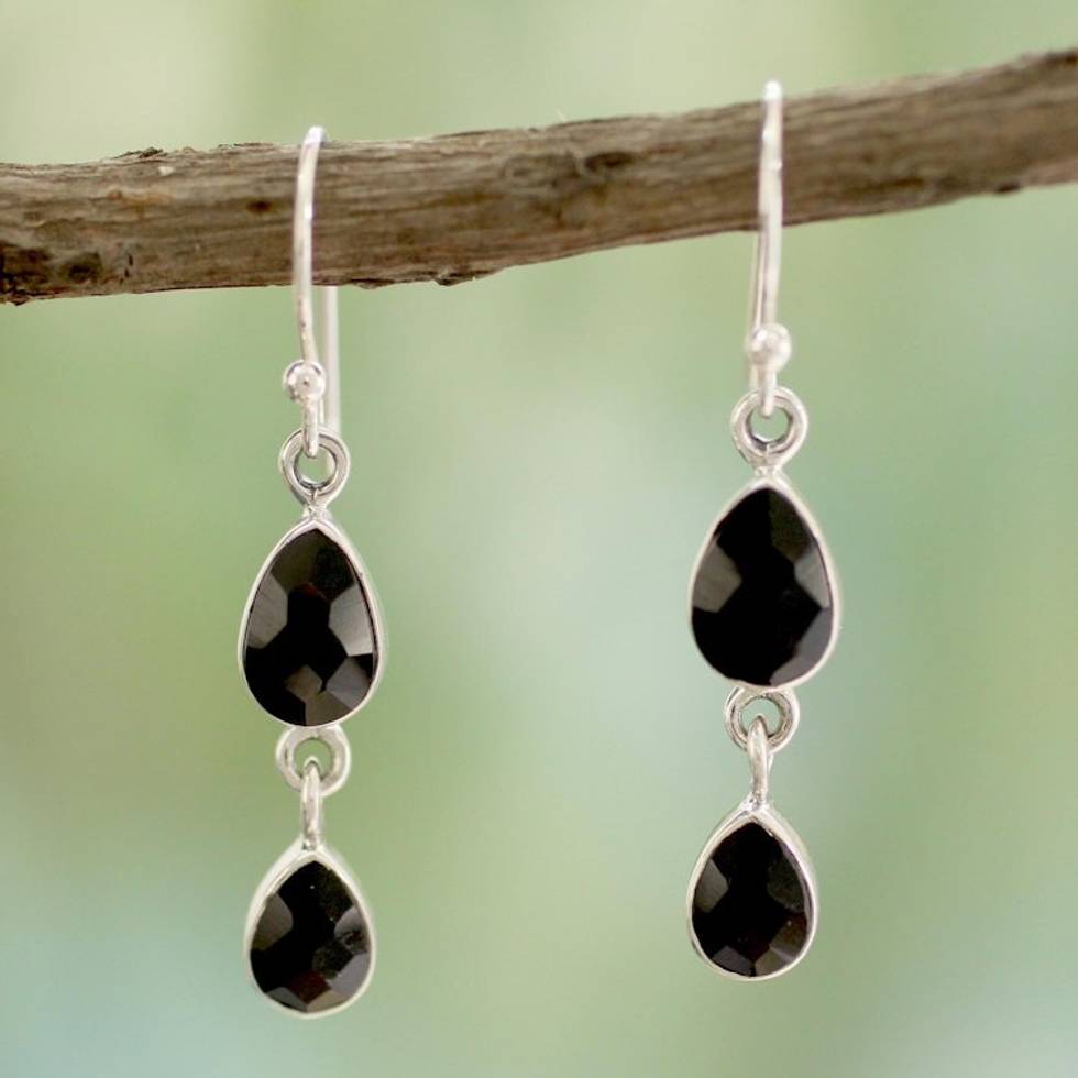 Indian Sterling Silver and Onyx Earrings 'Radha's Radiance' Item ID: 2669923963