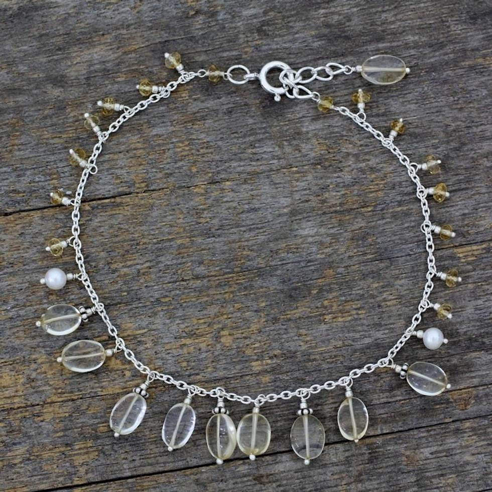 Indian Sterling Silver Pearl and Citrine Anklet 'Light of Kanpur' Item ID: 2671794895