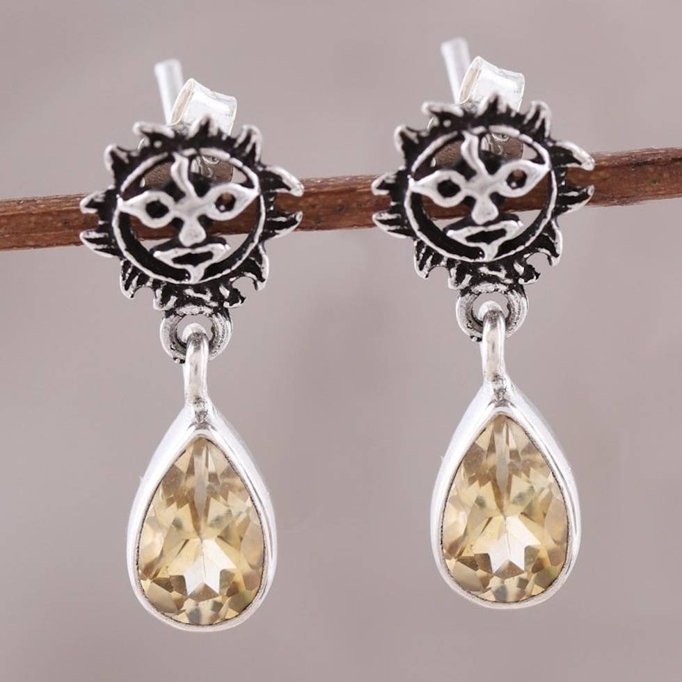 Indian Sterling Silver Yellow Citrine Sunny Dangle Earrings 'Rays of Sunshine' Item ID: 2671792756