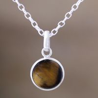 Indian Tiger's Eye and Sterling Silver Pendant Necklace 'Swing Low in Brown' Item ID: 2671787810