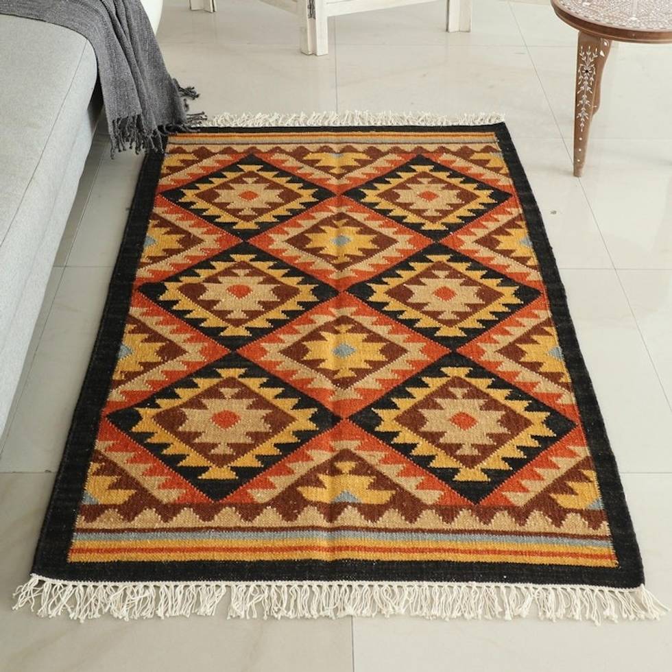 Indian Wool Area Rug with Geometric Motif 3 x 5 'Grain of Truth' Item ID: 2671789124