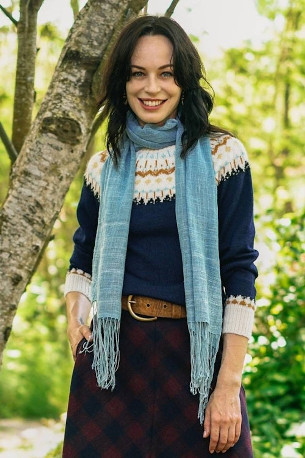 Indigo Blue Hand Dyed and Woven Cotton Shawl 'Afternoon Indigo' Item ID: 2671737667