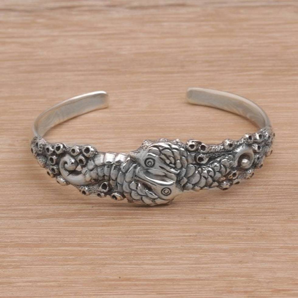 Indonesia 925 Sterling Silver Seahorse Cuff Bracelet 'Seahorse Family' Item ID: 2676657226