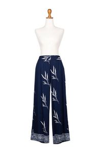 Indonesian Batik Rayon Pants with Floral and Leaf Motifs 'Midnight Roots' Item ID: 2676662518