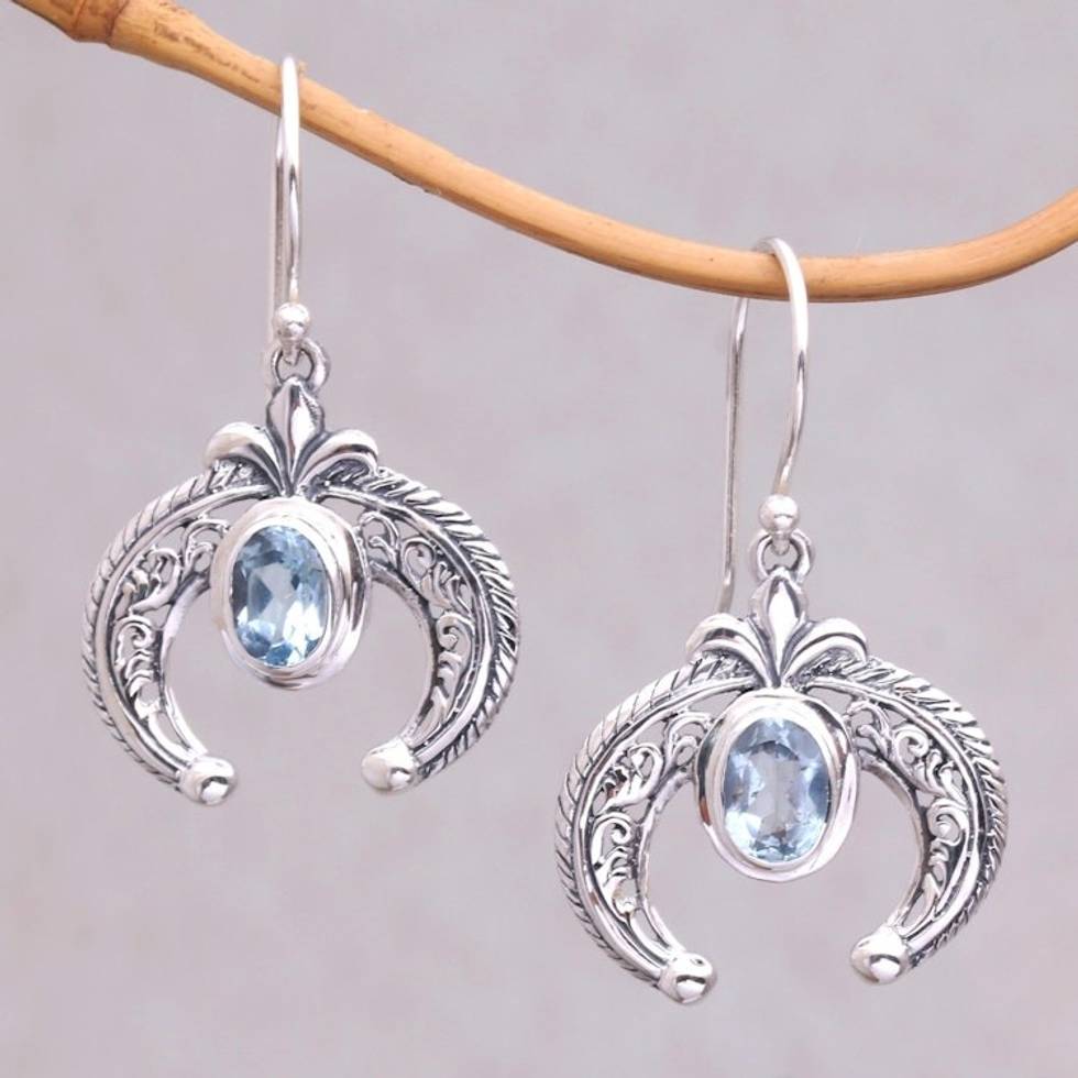 Indonesian Blue Topaz and Sterling Silver Dangle Earrings 'Elegant Talons' Item ID: 2671735355