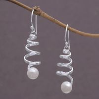 Indonesian Cultured Pearl Sterling Silver Spiral Earrings 'Moonlight Springs' Item ID: 2669922363