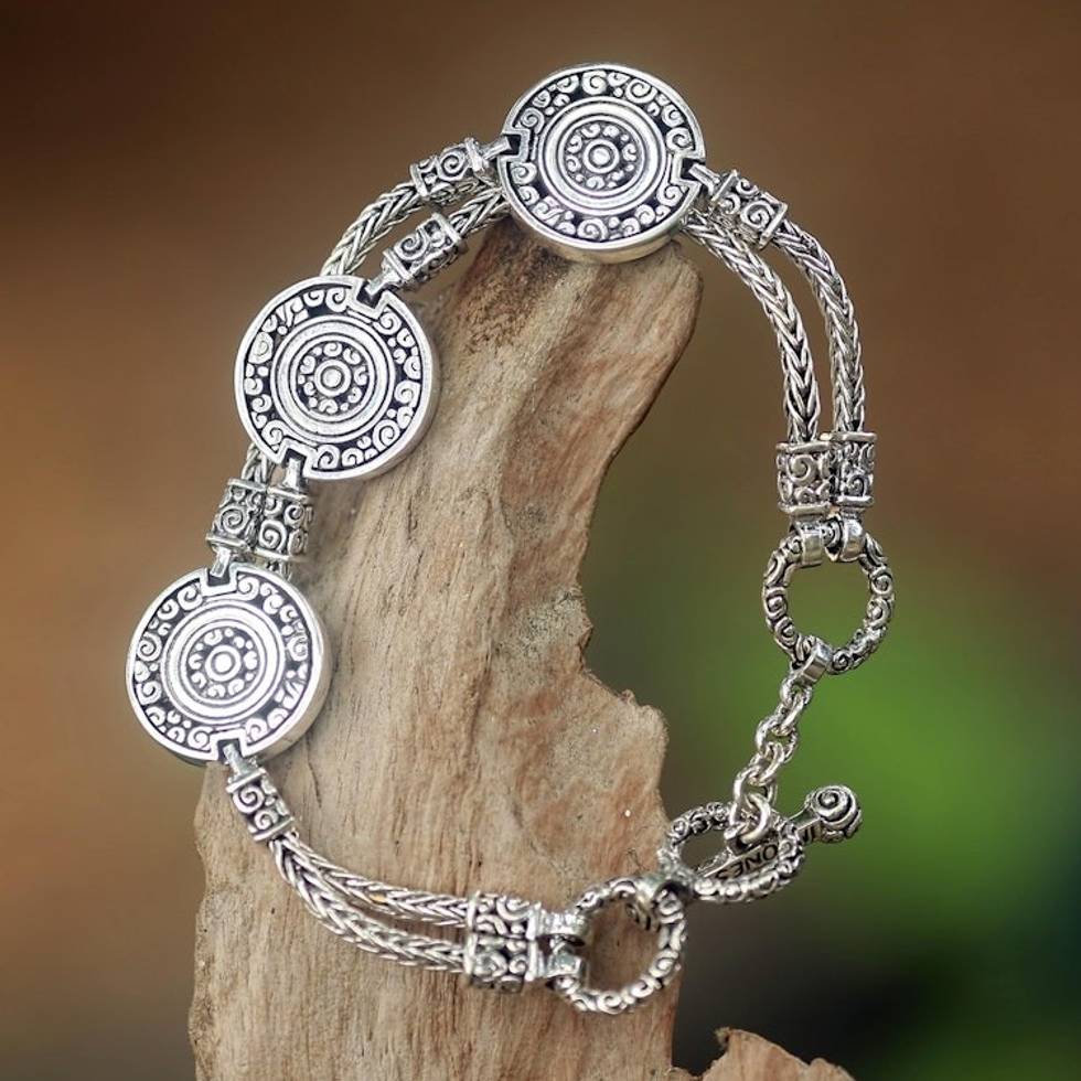Indonesian Good Fortune Sterling Silver Bracelet 'Coins of the Kingdom' Item ID: 2671627080