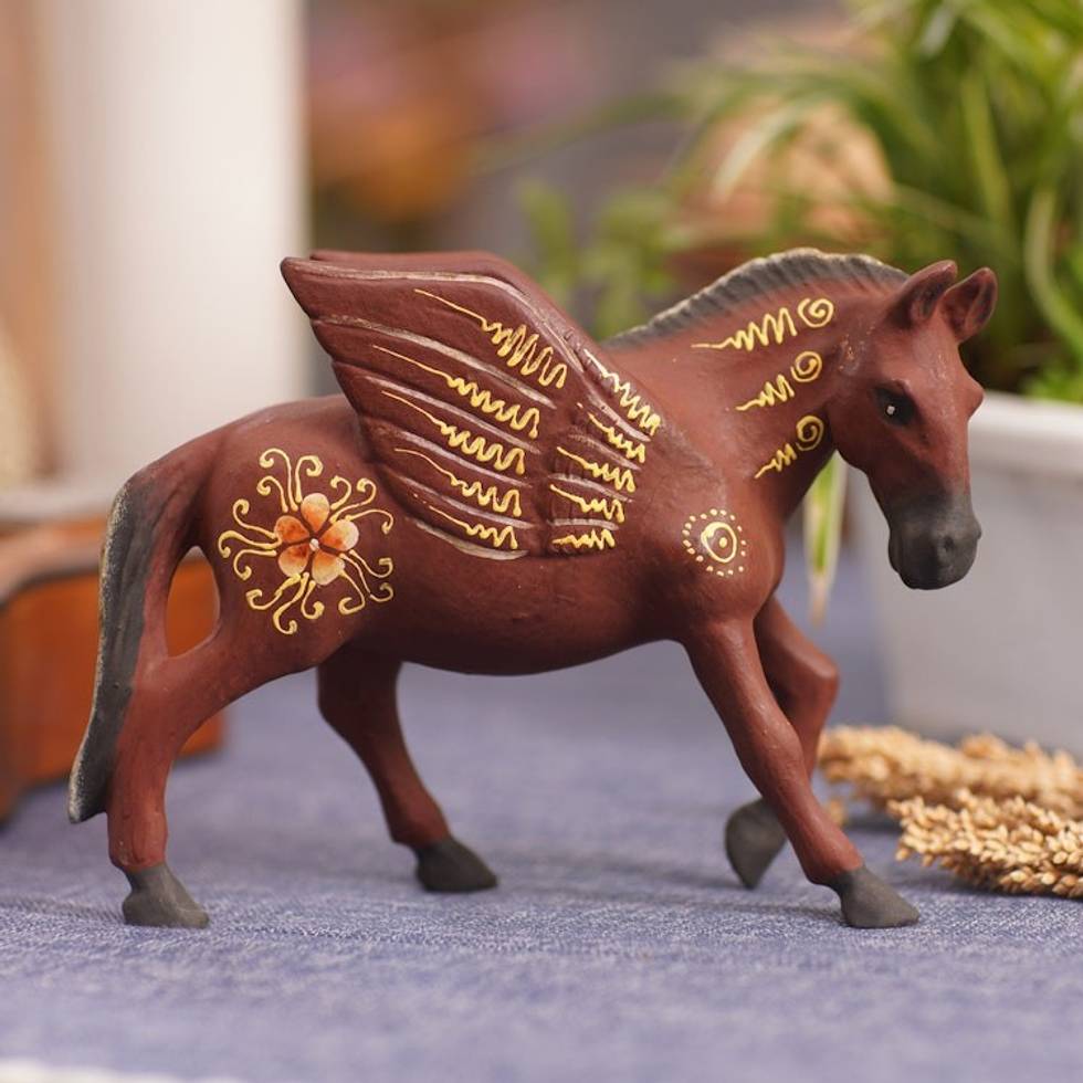 Indonesian Hand-carved Hand-painted Pegasus Wood Figurine 'Mythological Pegasus' Item ID: 2671748638