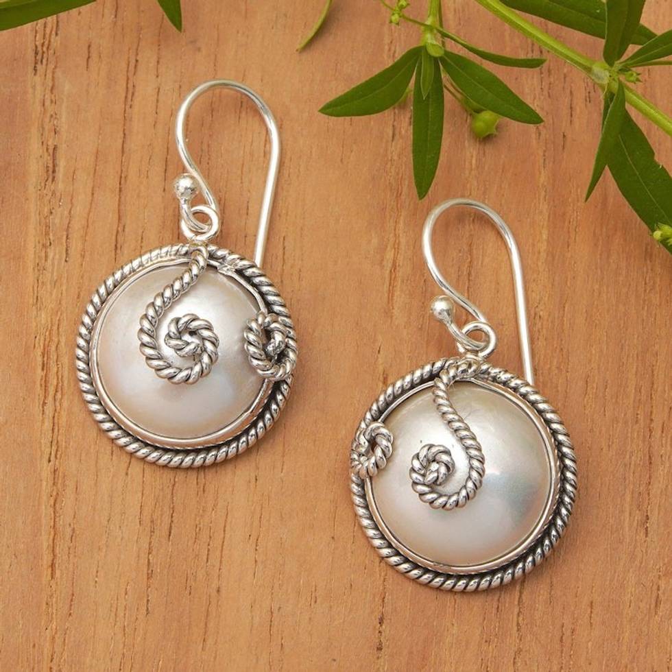 Indonesian Hand-Made Cultured Pearl and Silver Earrings 'Night Moon' Item ID: 2671701803