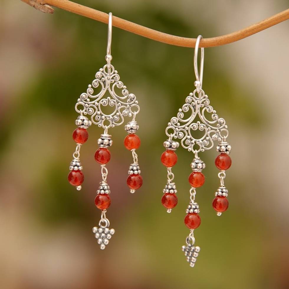 Indonesian Handmade Sterling Silver and Carnelian Earrings 'Amlapura Altar' Item ID: 2671669558