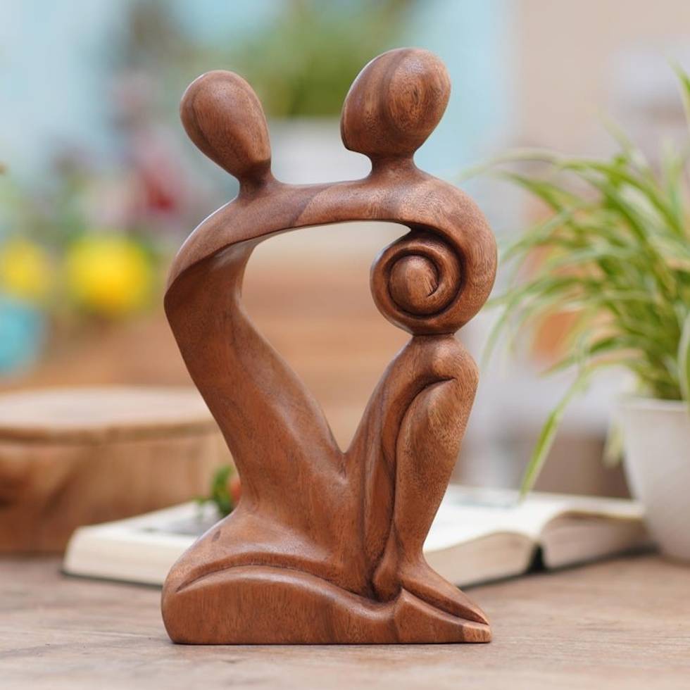 Indonesian Romantic Wood Sculpture 'Dreaming of You' Item ID: 2671698845